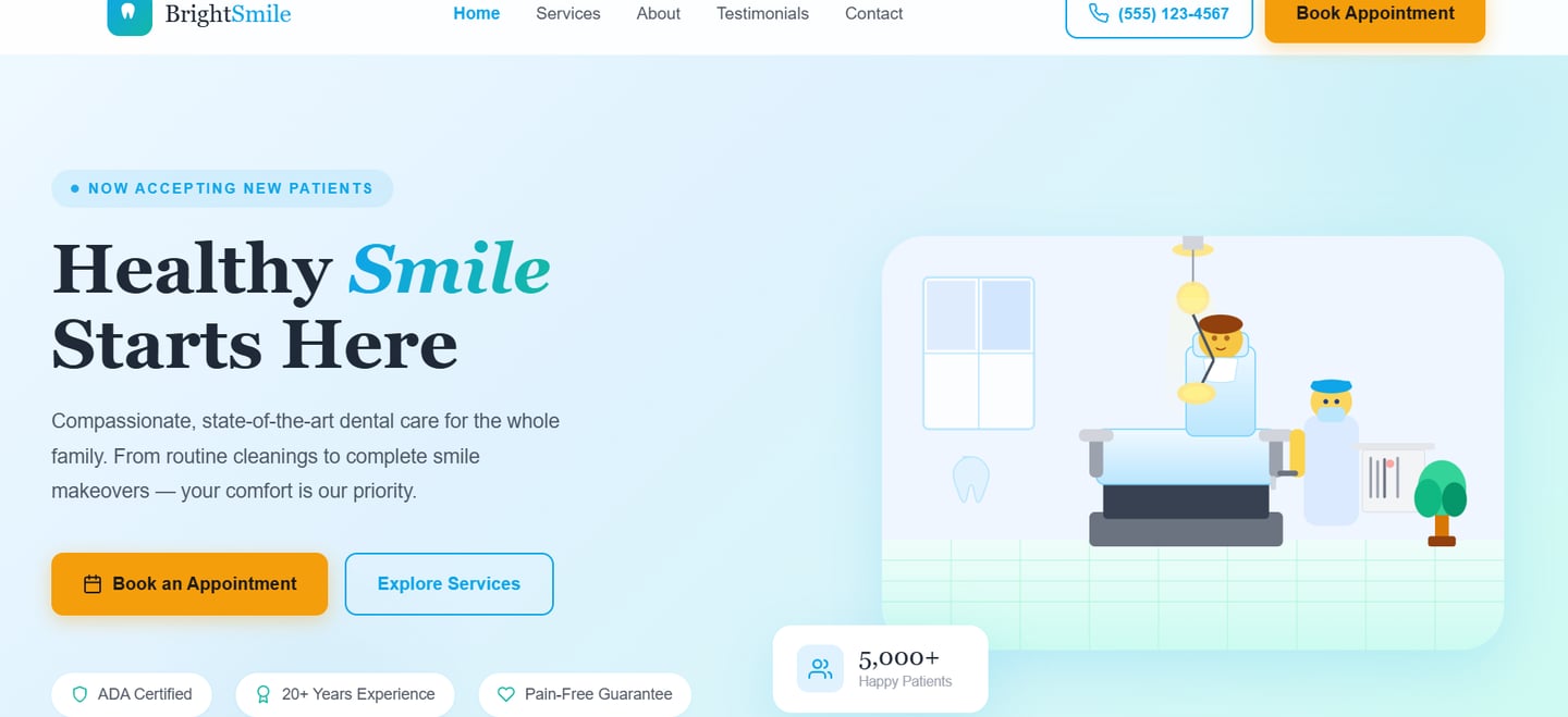 A modern dental website designed to present your services clearly, build trust with patients, and increase appointment requests.