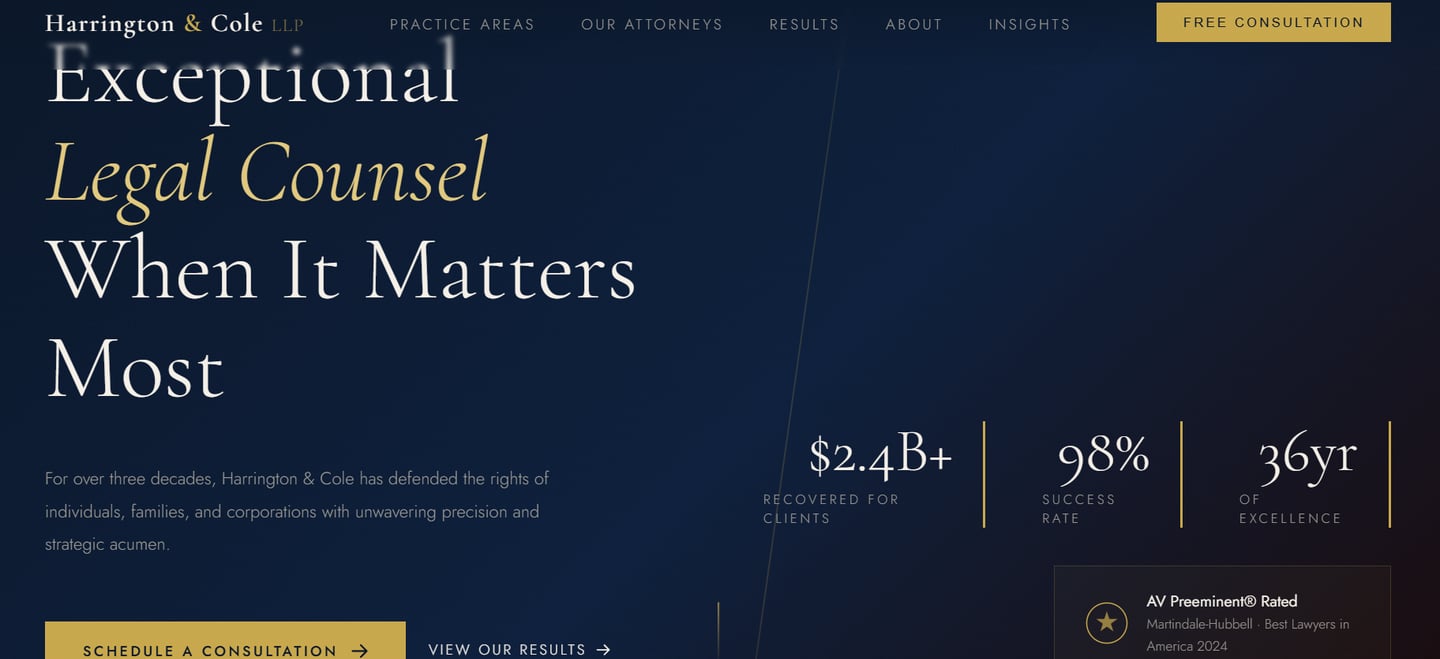 A modern legal website designed to present your expertise, build client trust, and generate consultation requests.