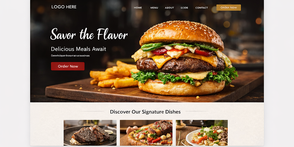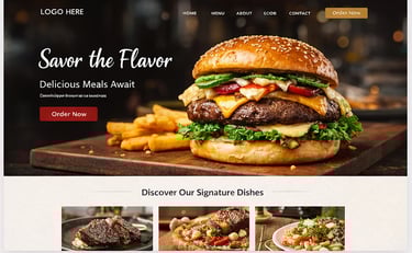 This restaurant website was designed to create a modern and appetizing online presence. The layout highlights high-quality food images, clear navigation, and strong call-to-action buttons to encourage visitors to explore the menu and place orders or make reservations. The design focuses on simplicity, visual impact, and a smooth user experience across all devices.