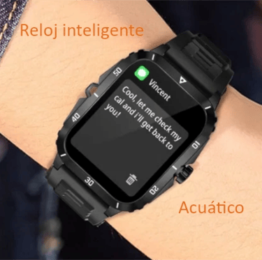 resistente al agua, diseño nuevo, color naranja. Modos de salud (presión arterial y frecuencia cardiaca), llamadas, mensajes, fondos cambiables, óximetro, ritmo cardiaco, presion en sangre, idiomas y muchas funciones. Duracion de bateria extensa con uso full dura hasta 1 semana, y con uso normal mucho mas. Compatible android y ios